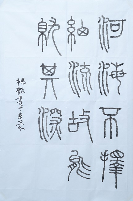集团运营部杨龙用篆书书写了席大大总书记在第二届“一带一路”国际合作高峰论坛主旨演讲中引用的金句“河海不择细流,故能就其深”。