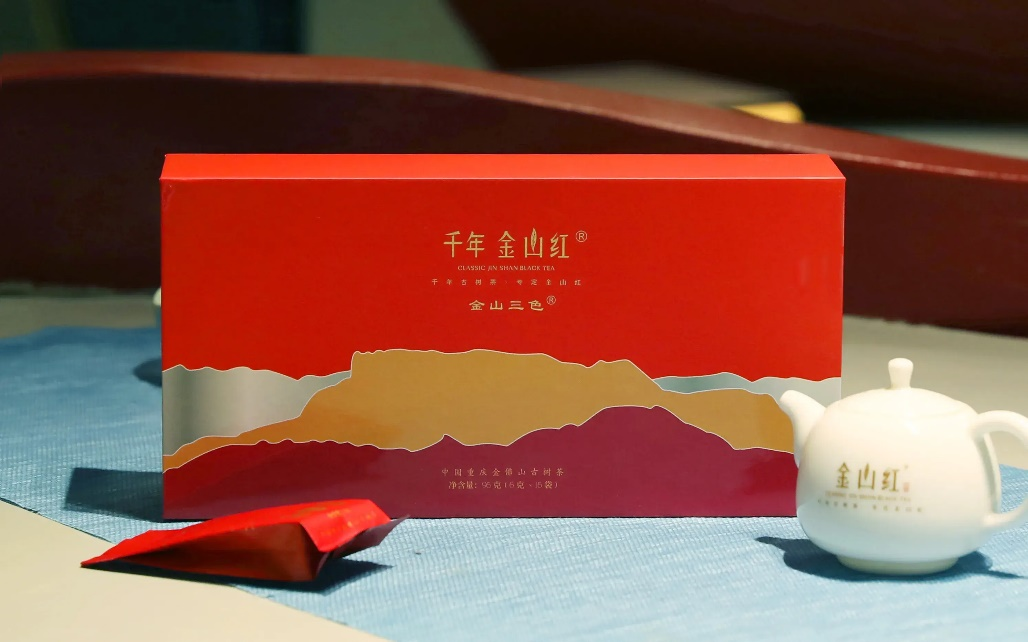 “千年金山红”古树红茶是以金佛山生态大树茶鲜叶为原料,由重庆古茶树研究院科研团队历经两年多的研制生产出的一款工夫红茶,其色泽乌润,滋味甜醇,余香悠长。其制作工艺复杂且要求极其严格,尤以手工定制款更甚。制作红茶的鲜叶采摘须在晴天的上午九、十点进行,采用天然阳光萎凋。揉捻须七揉七捻,而且必须揉足规定时辰。发酵转红,火候要恰到好处,差一分生,多一分过。