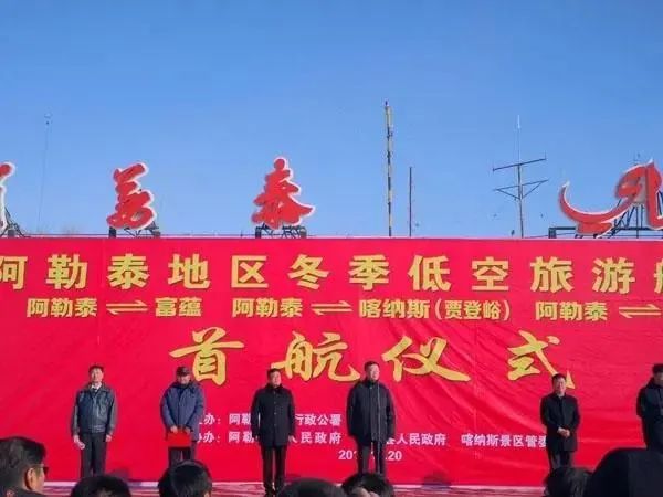 △2018年阿勒泰冬季低空旅游航线首航仪式(图源:中国日报网)